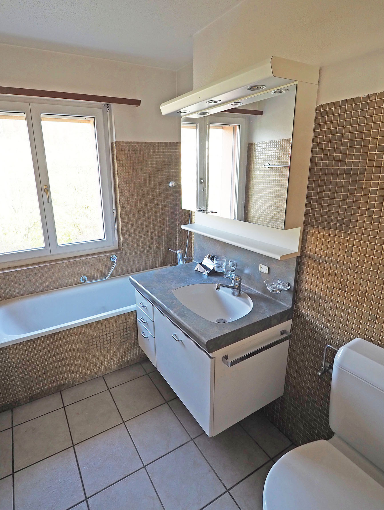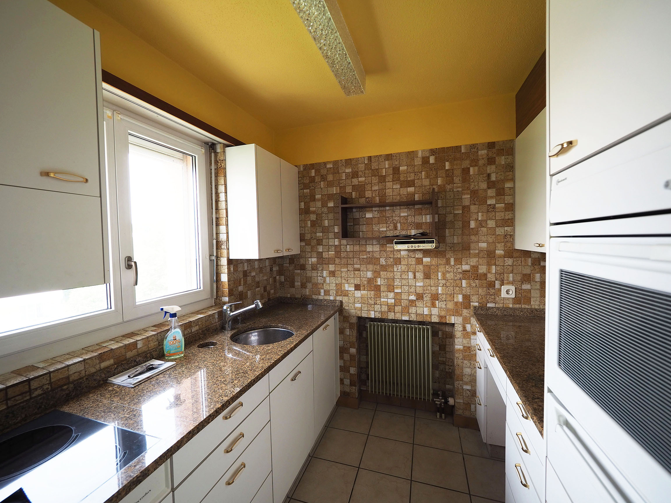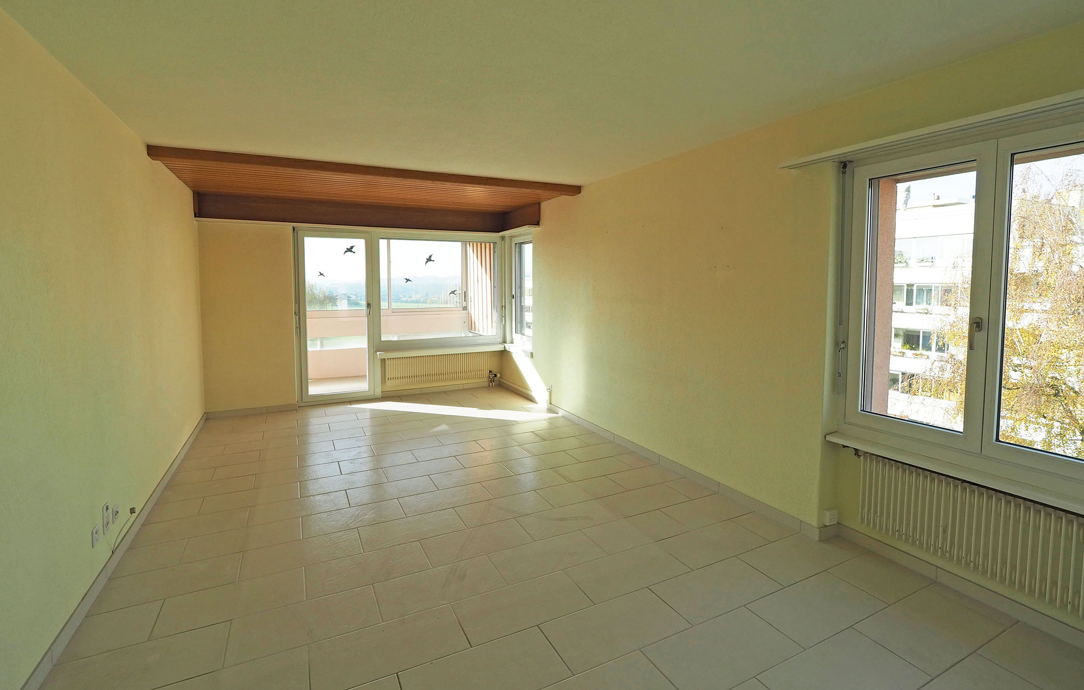 Beim Betreten der Wohnung fällt sofort der praktische Grundriss und grosszügige Wohnbereich auf. Der Essplatz zwischen Wohnraum und Küche ist abgetrennt, diese Bereiche könnten auch miteinander verbunden werden. Der grosse Balkon ist sonnig mit Aussicht ins Grüne und in die Ferne.