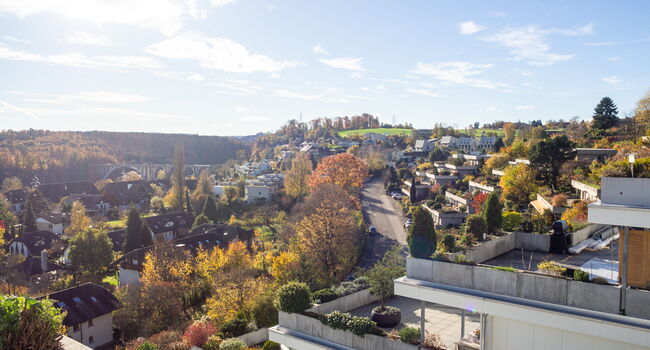 Diese helle 4.5-Zimmer Wohnung überzeugt mit einem grosszügigen Wohn- und Essbereich samt Cheminée und zwei Balkonen mit Blick auf Berge und Natur. Die moderne Küche, Parkettböden in den Schlafräumen sowei zwei Bädern, bieten hohen Wohnkomfort. Zur Wohnung gehört eine Garagenbox sowie die Mitbenützung von Allgemeinräumen und Gartenparzelle.
