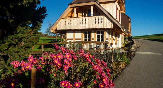 Dieses 2024 totalrenovierte Stöckli verbindet traditionellen Charme mit modernem Wohnkomfort und überzeugt durch sonnige und naturnahe Wohnlage.