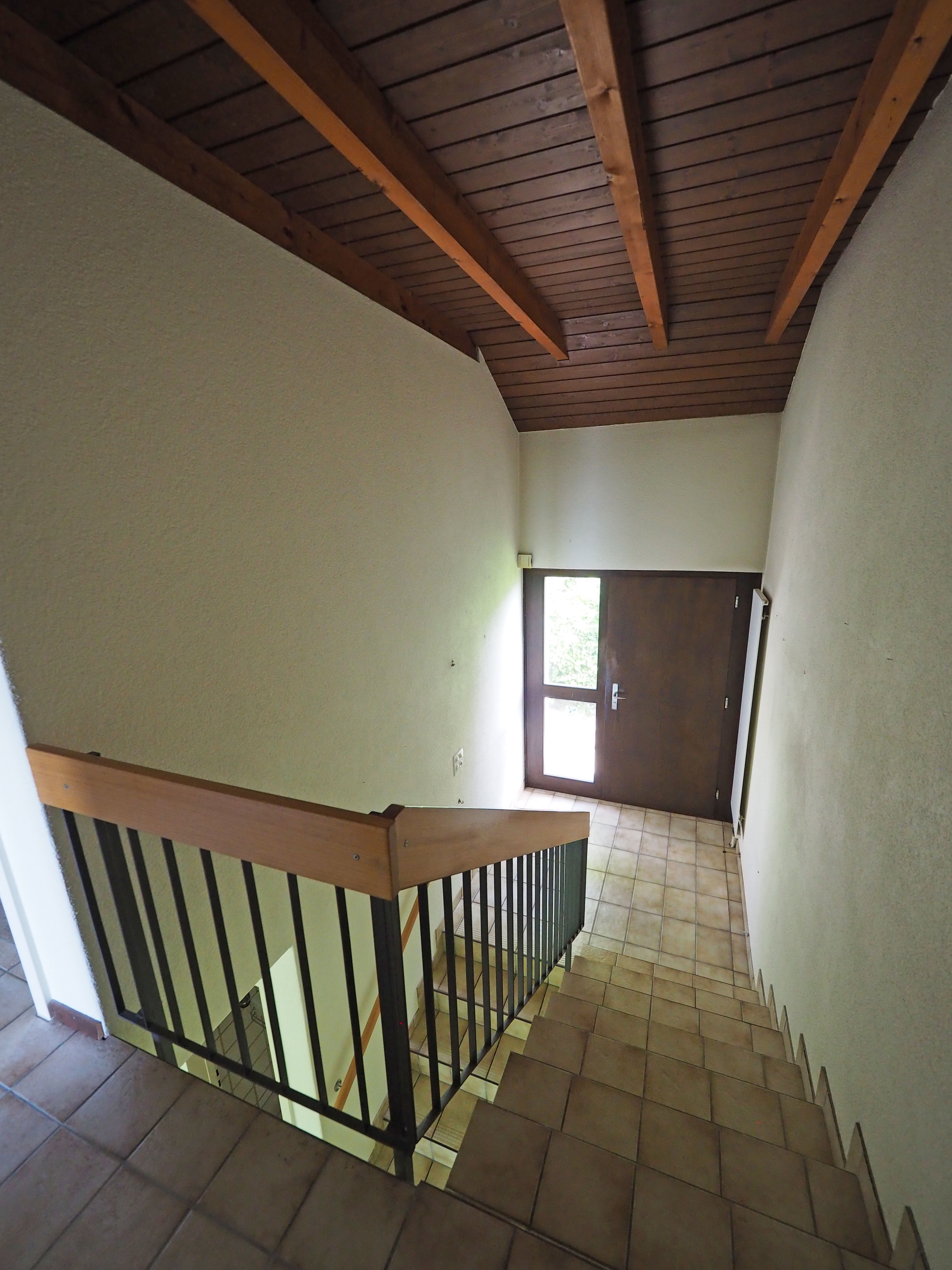 Der Treppenabgang wirkt offener und einladender