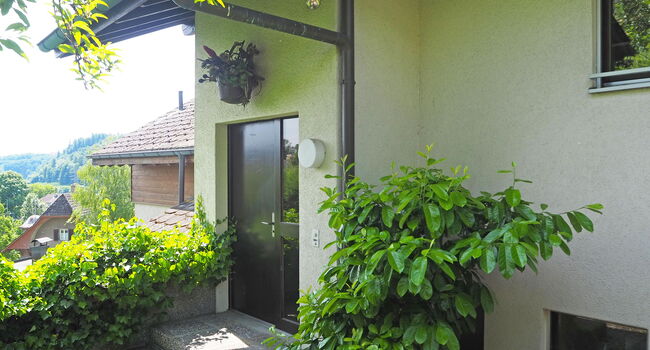 Dieses gut unterhaltene Wohnhaus hat eine Aussicht ins Grüne und profitiert von guter Besonnung. Der grosszügige Wohnbereich im Erdgeschoss hat Zugang zum gedeckten Sitzplatz. Der ideale Ort um die Stunden im Freien zu geniessen.