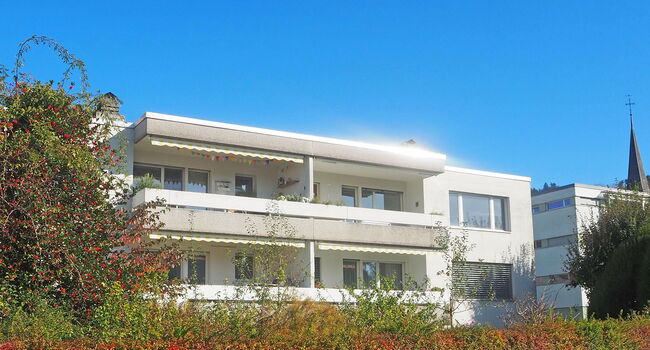 Diese helle 4.5-Zimmer Wohnung überzeugt mit einem grosszügigen Wohn- und Essbereich samt Cheminée und zwei Balkonen mit Blick auf Berge und Natur. Die moderne Küche, Parkettböden in den Schlafräumen sowei zwei Bädern, bieten hohen Wohnkomfort. Zur Wohnung gehört eine Garagenbox sowie die Mitbenützung von Allgemeinräumen und Gartenparzelle.